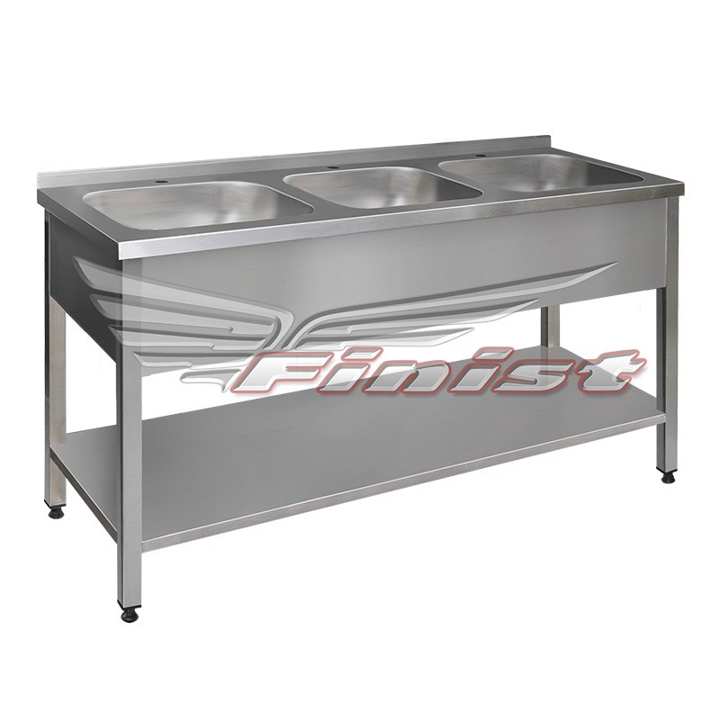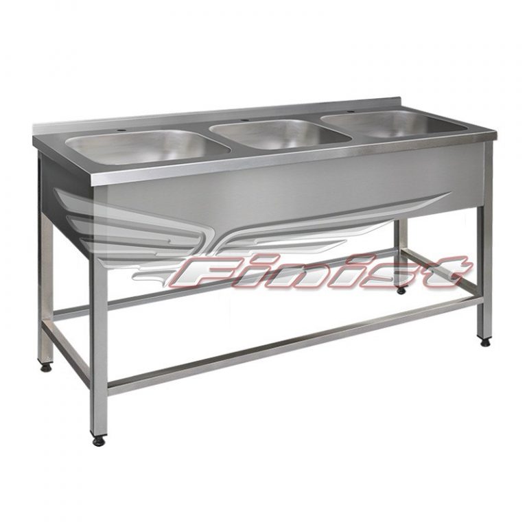Ванна моечная с 3 цельнотянутыми мойками. Серия «Премиум» ВМПц изготавливается на сварном каркасе. Сварная труба и фартук с 3-х сторон выполнены из нержавеющей стали. Каркас оснащен регулируемыми по высоте опорами для компенсации неровностей пола.