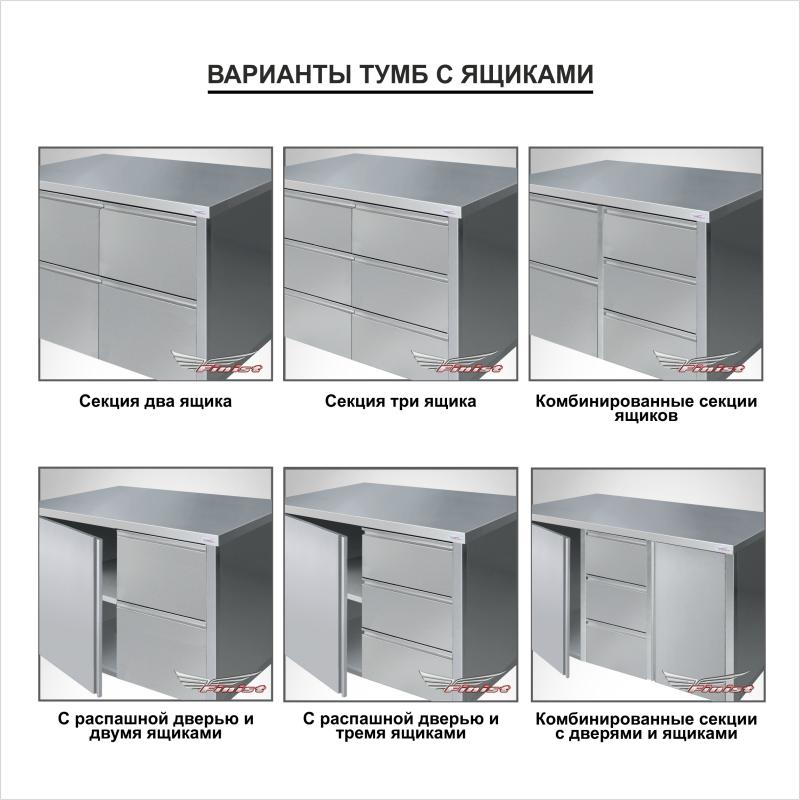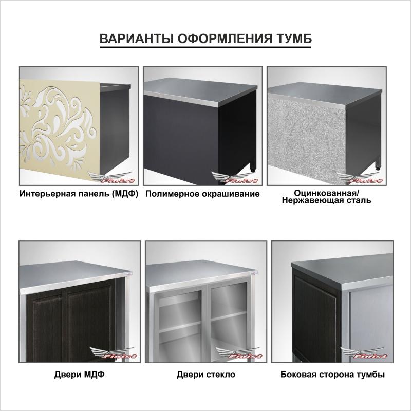 Ванны-тумбы серии «ВМТц» предназначены для мытья посуды, инвентаря и продуктов. Благодаря наличию закрытого объема их можно использовать для хранения посуды, инвентаря. «ВМТц» имеют сварную конструкцию из профильной трубы, состоящую из закрытой тумбы и столешницы с вваренным цельнотянутым моечным отделением.