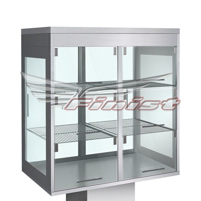 Витрина имеет удобное и функциональное остекление с четырёх сторон. Снабжена внутренней подсветкой.