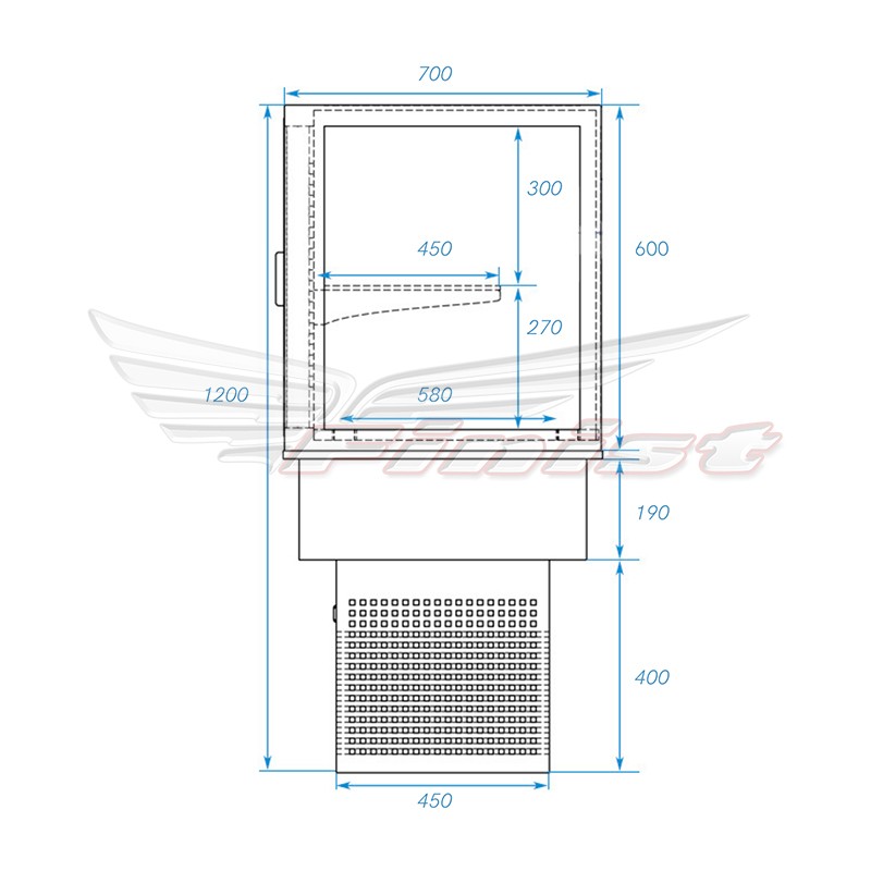 Встраиваемая холодильная витрина может быть выполнена из высококачественной пищевой нержавеющей стали или из стали с полимерно-порошковым прокрытием.