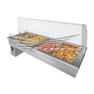 Корпус выполнен из пищевой нержавеющей стали. Предусмотрена возможность использования специальных гастроемкостей стандартных размеров (GN 1/1-1шт. + GN 1/2-2шт. + GN 1/3-3шт.) Максимальная глубина гастроемкости — не более 200 мм.