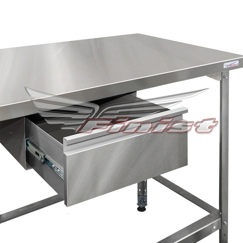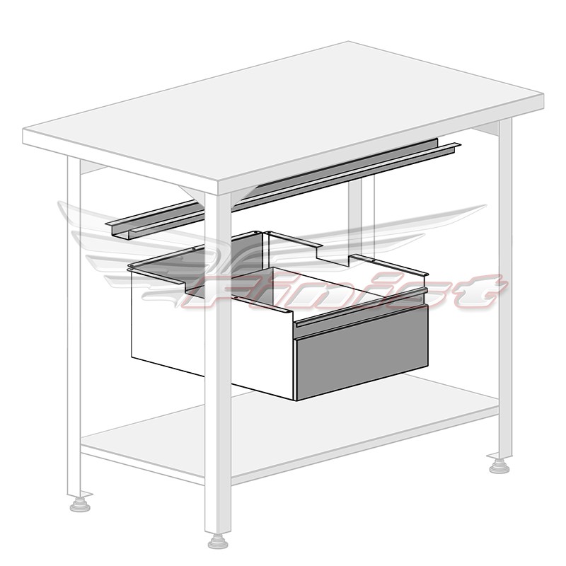 Выдвижной ящик поможет рационально использовать пространство. Изделие может выполняться из нержавеющей стали или из стали с полимерно-порошковым покрытием. Такой ящик пригодится для хранения различных кухонных или других принадлежностей, которые всегда будут под рукой и увеличит полезную площадь. Ящик с телескопическими направляющими надежно крепится саморезами к нижней части столешницы.