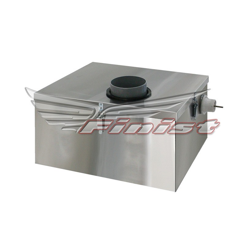 Перфорированный лоток для сбора крупных частиц съемный. Для обслуживания жироуловитель оборудован съемной крышкой, конструкция которой препятствует проникновению запахов наружу.