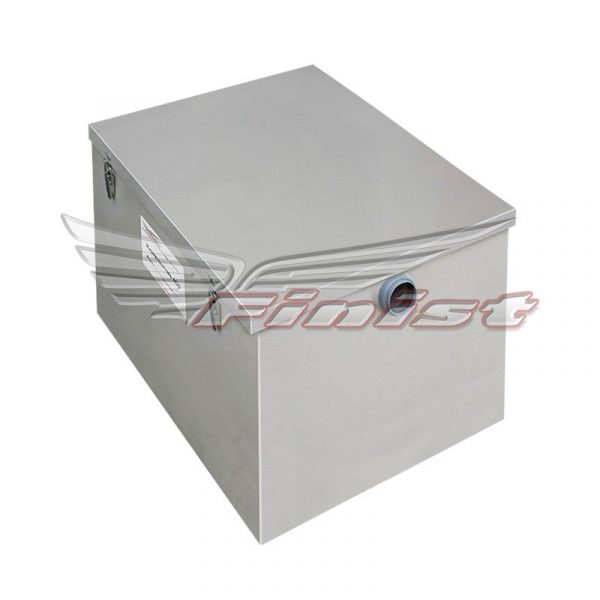 Перфорированный лоток для сбора крупных частиц съемный. Для обслуживания жироуловитель оборудован съемной крышкой, конструкция которой препятствует проникновению запахов наружу.