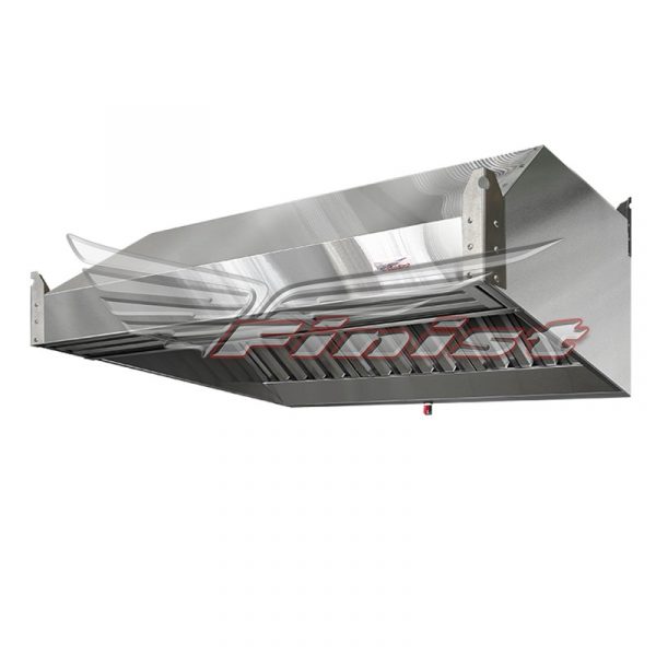 Зонт приточно-вытяжной нержавеющий ЗПВН-03 — зонт пристенный, применяется в случае, когда оборудование расположено у стены и ограничений по высоте потолка нет. Конструкция считается более эффективной за счет глубины кожуха. Также возможна установка светильников и вентилятора.