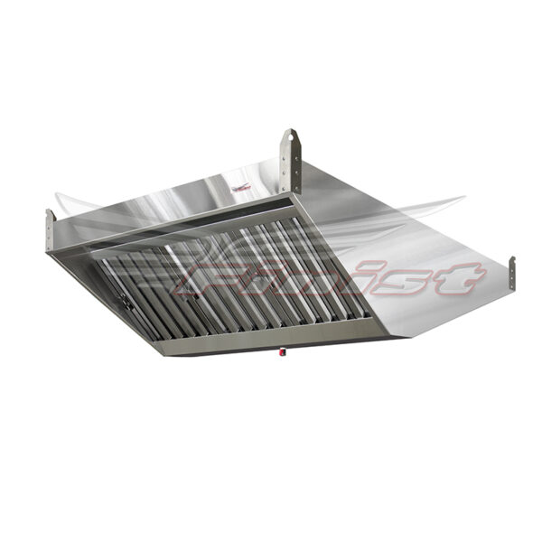 ЗВН-04/02 — островной (центральный) зонт. Используется над оборудованием, которое располагается в центре помещения В его конструкции предусмотрен скос для предотвращения травматизма в случае ограничения по высоте потолка. В отличии от ЗВН-04/01 данный тип зонта имеет большую площадь охвата продуктов горения, пара и неприятных запахов, а благодаря его конструкции, возможна интеграция светильников. Возможно встраивание вентилятора.